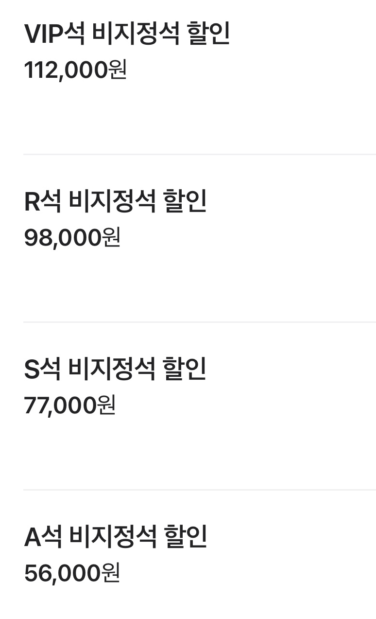 <비지정석 할인 가격>