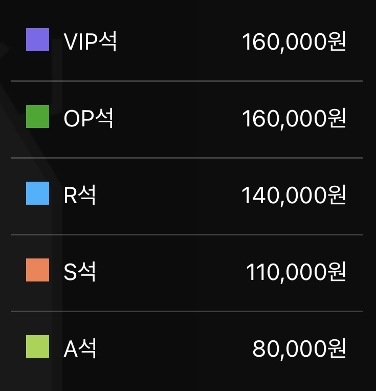 VIP석 160,000원
